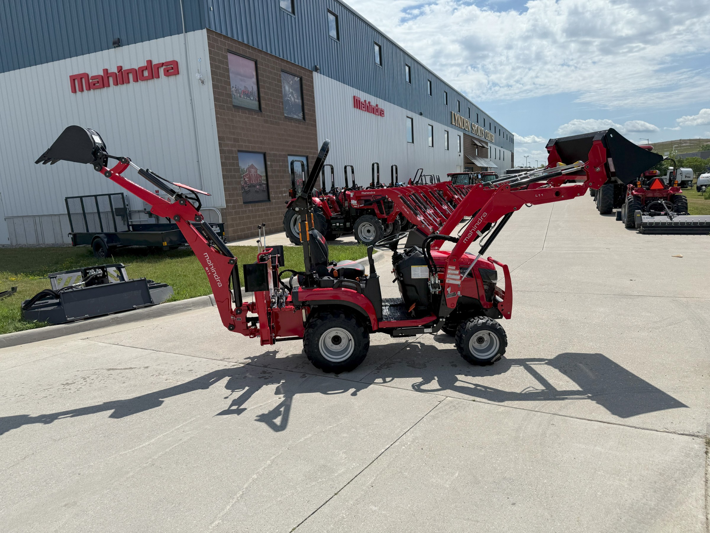 This is the all new Mahindra 1120 Compact Tractor. It’s packed with awesome features like a fender mounted loader joystick, a comfortable seat with adjustable armrests, a steel hood and fenders, side by side hydrostat pedals, a quick connect loader hose hookup, skid steer quick attach, a true category one three point, a mid and rear PTO, fast hydraulics, a tight turning radius, a cast iron driveline and Mitsubishi Diesel engine, and so much more.