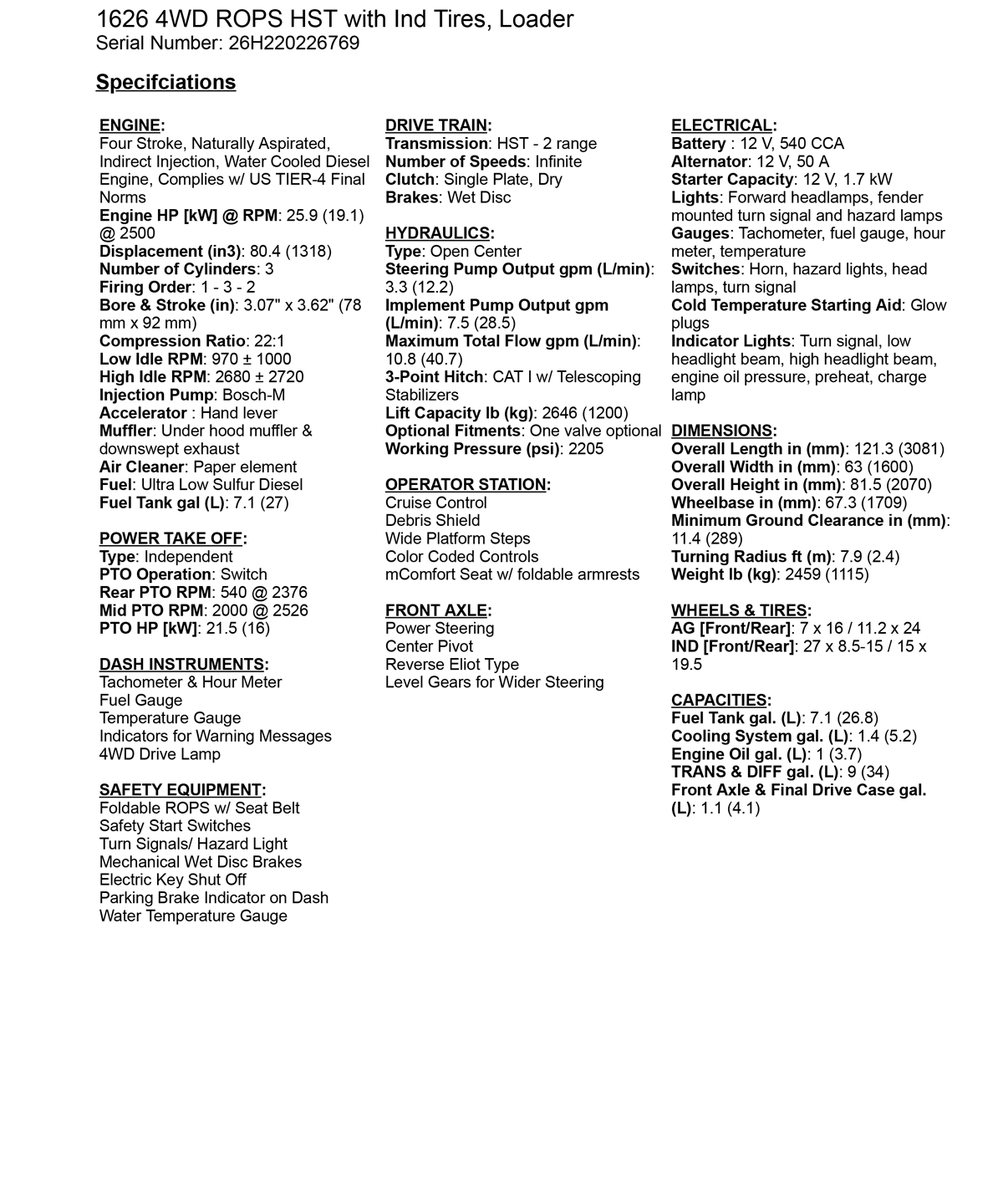 This 26 HP tractor is the most capable in it’s class. It can move round bales, run a five ft. tiller or brush hog, install food plots, and complete many other tasks other tractors the same size cant. It is powered by a Mitsubishi Diesel that is a great cold starter and runs very smooth and quiet. It has a steel hood and fenders and a completely cast iron driveline ensuring long term durability and heavy operating weight.