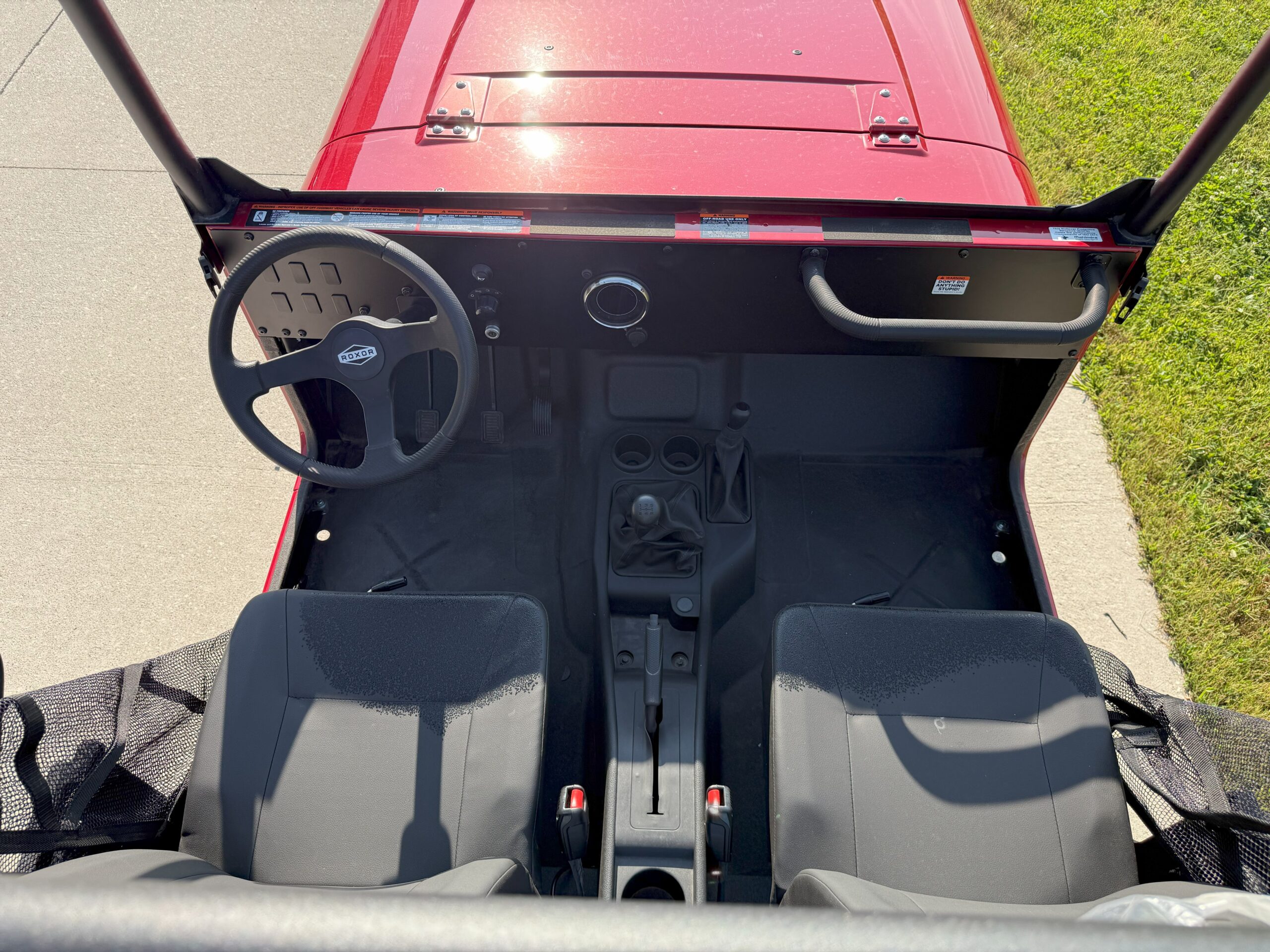 The Mahindra Roxor is an extremely heavy duty 55 HP Diesel side by side. It has a 5 speed manual transmission with a two speed manual transfer case paired with HD Dana axles. The Roxor has an all steel body and a heavy duty frame and driveline making it an ideal choice for demanding terrain and work.