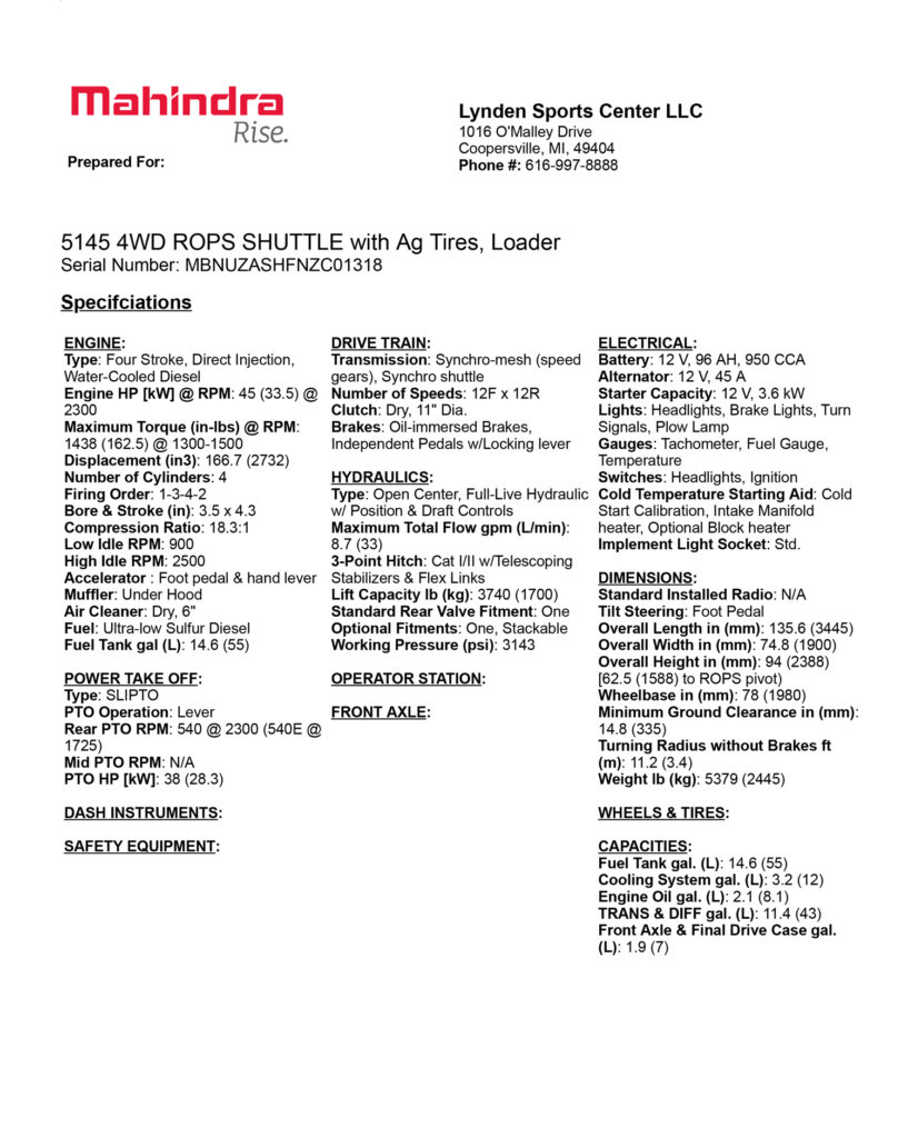• 45 HP Mahindra Diesel Engine