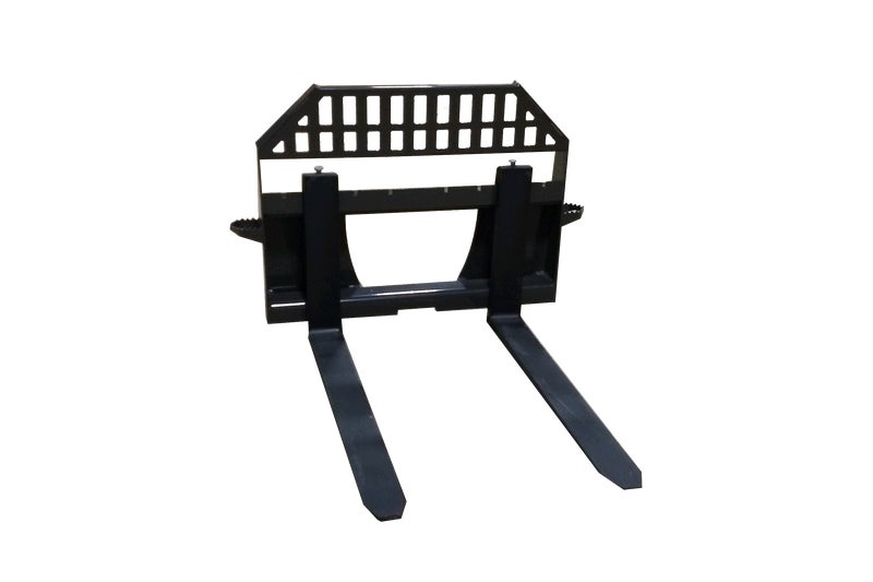 Anyone that owns a skid steer should have a set of forks on hand. Forks are ideal for lifting pallets, loading lumber or just about anything else. Our forks are 1-3/4 inches thick, 5 inches wide and 48 inches long. They are completely heat treated and rated to carry 8,000 lbs. We put a step on both sides of our frames so the operator can easily climb into the cab. Euro Style and John Deere mounts are available.